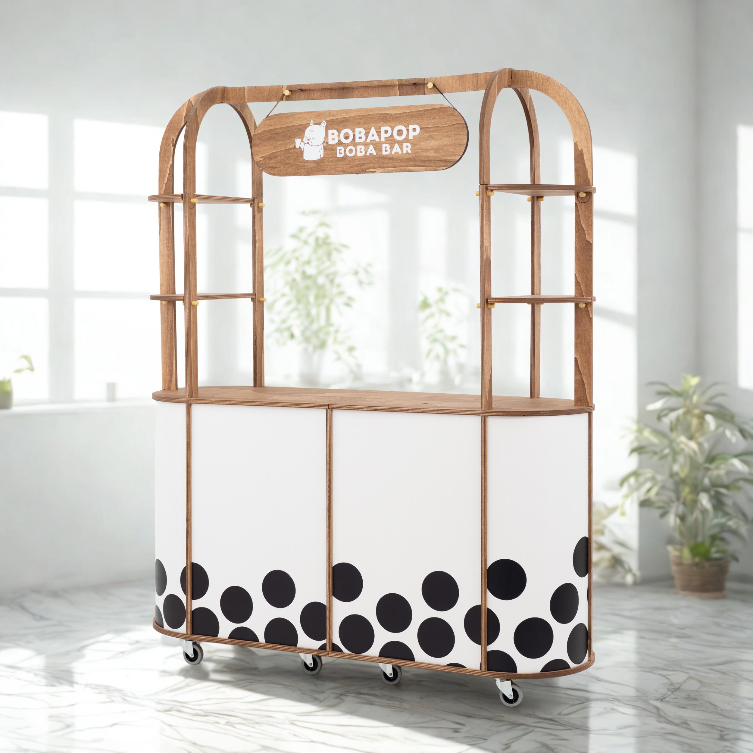 A visually striking, staffed boba cart that serves drinks on-site and integrates beautifully into your event. Attendants prepare drinks while guests enjoy personalized service in an elevated setting.